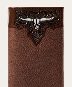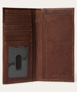 Made from top-grain leather, this checkbook wallet features brown pebble grain leather and with tooled veg tan leather overlay and embossed hand-painted steer head and Stetson logo. At once rugged and refined, each of our wallets embodies our legendary commitment to quality and attention to detail.