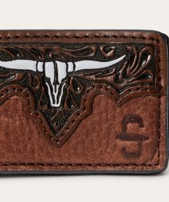 Made from top-grain leather, this magnetic money clip features brown pebble grain leather and with tooled veg tan leather overlay and embossed hand-painted steer head and Stetson logo. At once rugged and refined, each of our small leather goods embodies our legendary commitment to quality and attention to detail.