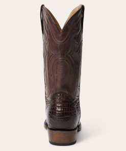 The Holliday Caiman Boot combines a traditional western silhouette with statement-making exotic materials. It features a genuine caiman vamp and a 13” leather corded shaft and features an R toe—a classic all-purpose style that also dresses up well—as well as a stacked leather cowboy heel. Its quality construction includes 3⁄4 welt soles, brass nails and handmade lemonwood pegs that will expand and contract with any moisture the boot may encounter. Premium leather lining and a removable Tru-X insole ensure comfort in every step.