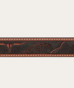 Made from top grain leather, this belt has a 1 ½” wide tooled cognac leather strap embossed with western icons and basket weave tabs. It features seven holes on the point end to ensure a proper fit for all body types and is finished with a silver-tone Stetson buckle. At once rugged and refined, each of our belts embodies our legendary commitment to quality and attention to detail.