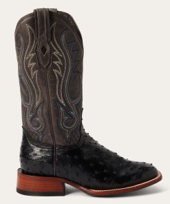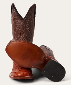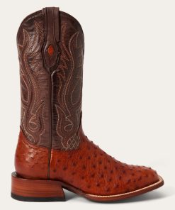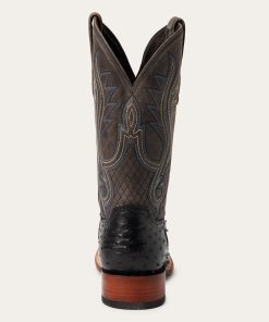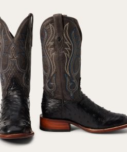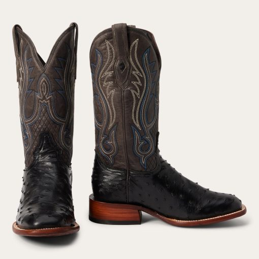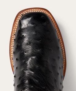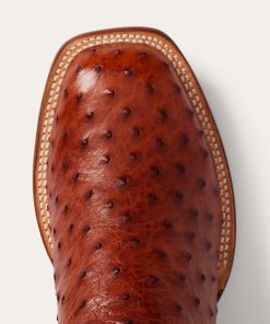 A square toe exotic boot that combines a working cowboy silhouette with luxury materials, the Ozzy Ostrich Boot features a full Ostrich vamp and 13” calf leather shaft with intricate hand stitching and cording. It has a square toe—a popular working style that provides maximum all-day comfort—and channel welted full leather construction with 56 lemonwood pegs and eight premium brass nails per boot. The beveled bottom sole is thinned out toward the edges, creating a rounded, tapered appearance around the arch. A hand-stacked leather heel, premium cow leather lining, and a leather-lined Poron insole ensure comfort in every step.