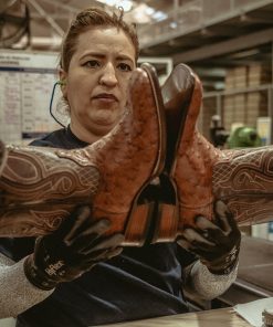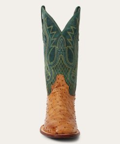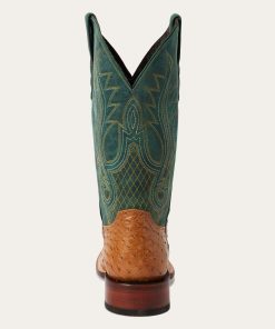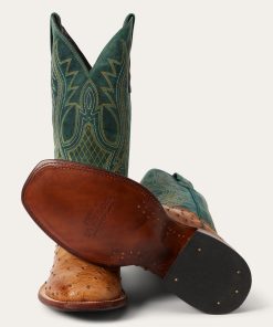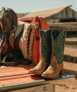 A square toe exotic boot that combines a working cowboy silhouette with luxury materials, the Ozzy Ostrich Boot features a full Ostrich vamp and 13” calf leather shaft with intricate hand stitching and cording. It has a square toe—a popular working style that provides maximum all-day comfort—and channel welted full leather construction with 56 lemonwood pegs and eight premium brass nails per boot. The beveled bottom sole is thinned out toward the edges, creating a rounded, tapered appearance around the arch. A hand-stacked leather heel, premium cow leather lining, and a leather-lined Poron insole ensure comfort in every step.