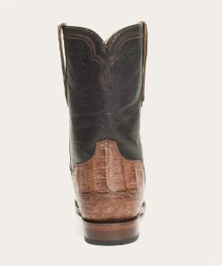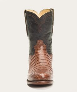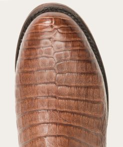 The Puncher Exotic Boots feature a Brown Caiman Belly Leather Vamp and a 10” waxy brown leather shaft. Additional features include full welt construction, premium cow lining, removable Tru-X insoles, premium brass nails and hand-driven lemonwood pegs that enable the boot to withstand the elements by expanding and contracting with any moisture the boot may encounter.