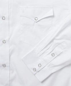 This classic snap-front Western shirt is crafted from cotton pinpoint oxford cloth, which has a clean, matte appearance and a crisp, substantial feel that will only get better with time and wear. It has two one-point snap-closure pockets, a spread collar, one-point front and back yokes, pearl logo snaps and subtle tonal embroidery on the left chest pocket and right cuff.