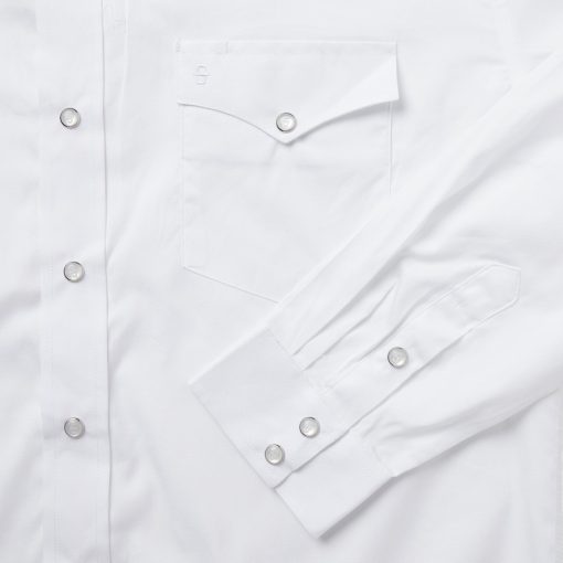 This classic snap-front Western shirt is crafted from cotton pinpoint oxford cloth, which has a clean, matte appearance and a crisp, substantial feel that will only get better with time and wear. It has two one-point snap-closure pockets, a spread collar, one-point front and back yokes, pearl logo snaps and subtle tonal embroidery on the left chest pocket and right cuff.