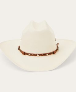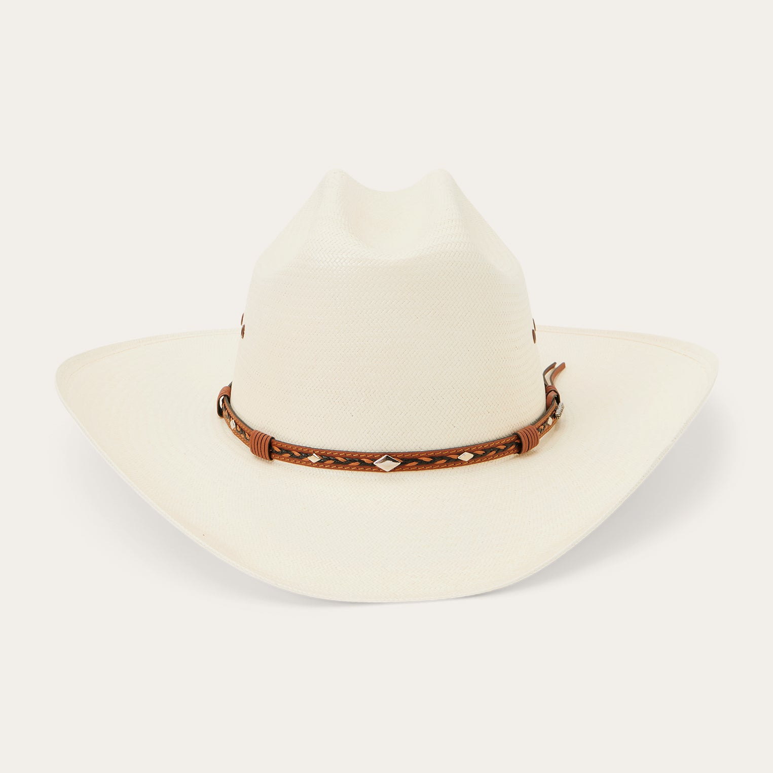 Handmade in the U.S.A. from high-quality shantung, the Ocala 8X Straw Cowboy Hat has a 4” brim and a 4 3/8” cattleman crown with eyelets for increased circulation and breathability. Its rugged Western style is enhanced by a two-tone braided leather hat band with diamond-shaped conchos and an absorbent DRI-LEX® sweatband ensures an all-day, comfortable fit.