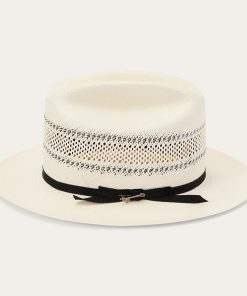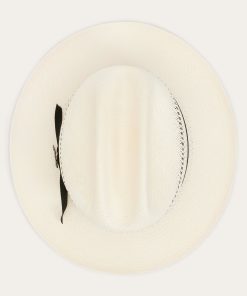 The Open Road Straw Hat features a sheepskin sweatband and a vented 4” cattleman crown outfitted with a grosgrain hat band and branding-iron hat pin bearing the initials “JBS”, a nod to our founder, John B. Stetson, whose pioneering legacy lives on in every hat we sell.