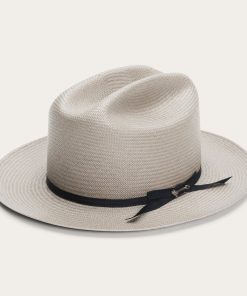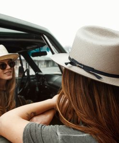 The Open Road Straw features a sheepskin leather sweatband and a 4” crown outfitted with a satin hat band.
