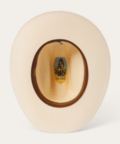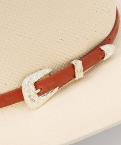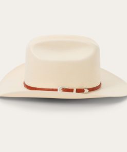 Handwoven one strand at a time in the U.S.A. from 10X quality shantung straw, the Primo Cognac combines our legendary craftsmanship with a timeless western profile, featuring a 4 ⅜” wide oval cattleman crown and 3 ½” slightly curved brim. It has a leather hatband with traditional three-piece silver-tone buckle set and a genuine leather sweatband for a secure, comfortable fit.
