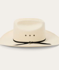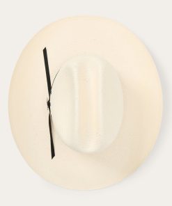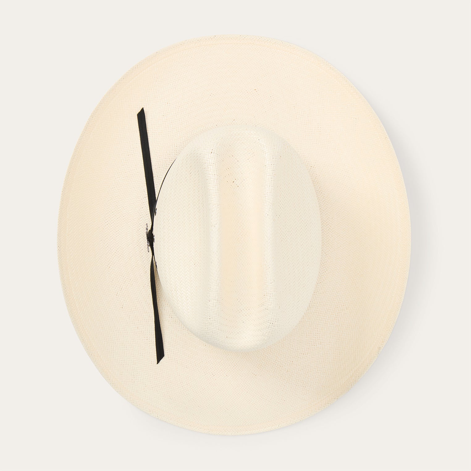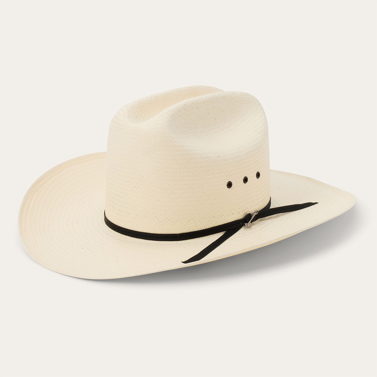 Handwoven one strand at a time in the U.S.A. from 10X quality shantung straw, the Rancher combines legendary craftsmanship with a heritage western profile that stands tall in the saddle. It has a 5” cattleman crown, 4” brim and a 2-ply grosgrain ribbon hatband with JBS branding iron pin—a nod to our founder John B. Stetson, whose trailblazing legacy lives on in everything we make. Eyelets in the crown provide extra circulation and a genuine leather sweatband ensures a time-tested, comfortable fit.