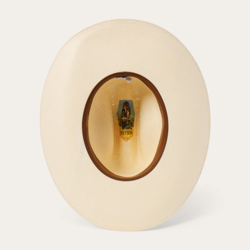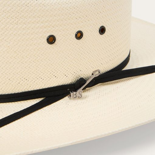 Handwoven one strand at a time in the U.S.A. from 10X quality shantung straw, the Rancher combines legendary craftsmanship with a heritage western profile that stands tall in the saddle. It has a 5” cattleman crown, 4” brim and a 2-ply grosgrain ribbon hatband with JBS branding iron pin—a nod to our founder John B. Stetson, whose trailblazing legacy lives on in everything we make. Eyelets in the crown provide extra circulation and a genuine leather sweatband ensures a time-tested, comfortable fit.