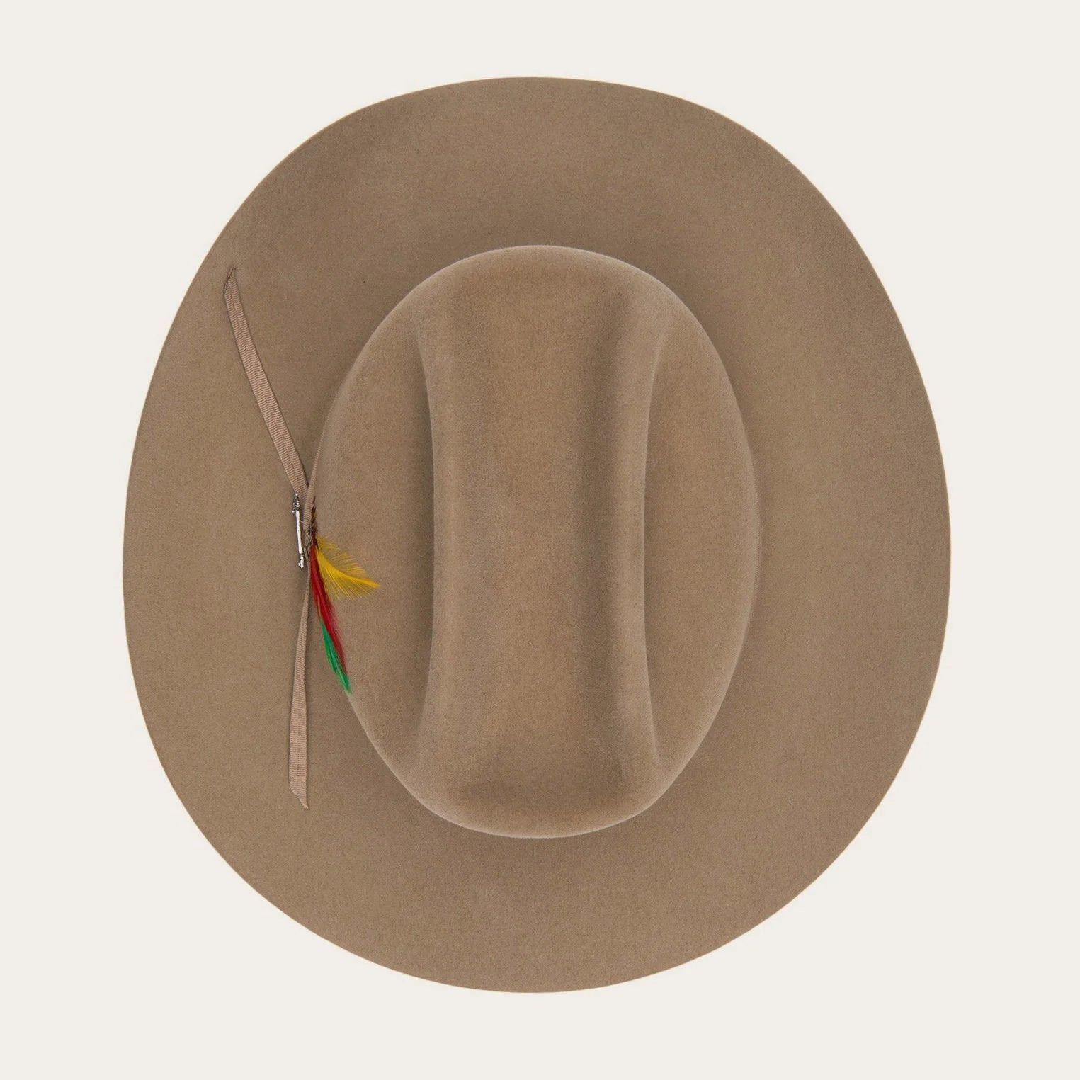 The Range 6X Cowboy Hat is constructed of 6X quality fur felt and features a regular cattleman crown and a 2-ply cord hat band with feather. 6X Quality Fur Felt. Made in USA.