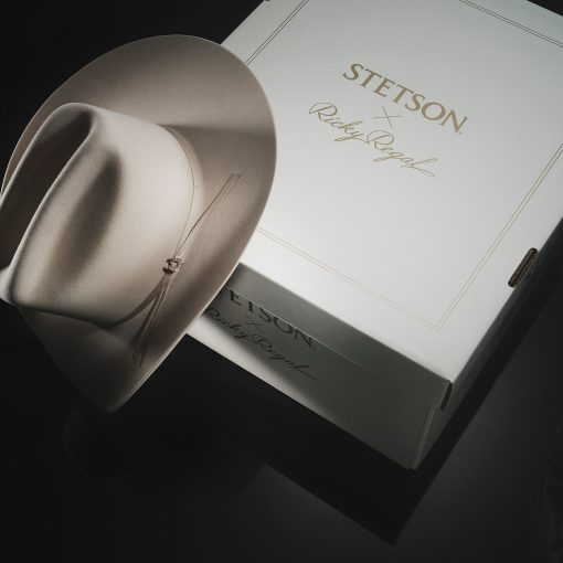 The Regal is handmade in the U.S.A. from our proprietary 6X quality fur felt, which is prized for its durability and elegant feel, and comes with a custom stamped co-branded leather sweatband and keepsake Stetson x Ricky Regal hat box.
