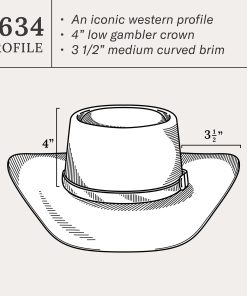 Handmade in the U.S.A. of durable, weather-resistant 4X quality buffalo felt, the Revenger 4X features a stately 4” gambler crown and 3 ½” brim. An embossed vinyl hat band augments its rugged style and a genuine leather sweatband, and full satin liner provide a secure and comfortable fit. Fit for long days on the range, our 4X quality buffalo hats are imbued with a Western spirit and fit for long days on the range. Includes an original Stetson hat box.