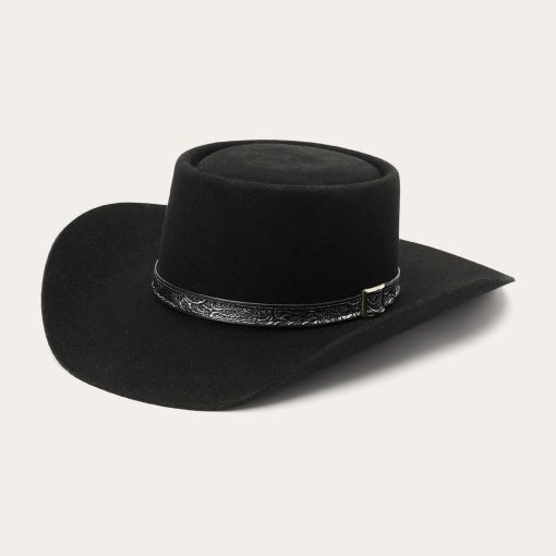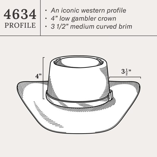 Handmade in the U.S.A. of durable, weather-resistant 4X quality buffalo felt, the Revenger 4X features a stately 4” gambler crown and 3 ½” brim. An embossed vinyl hat band augments its rugged style and a genuine leather sweatband, and full satin liner provide a secure and comfortable fit. Fit for long days on the range, our 4X quality buffalo hats are imbued with a Western spirit and fit for long days on the range. Includes an original Stetson hat box.