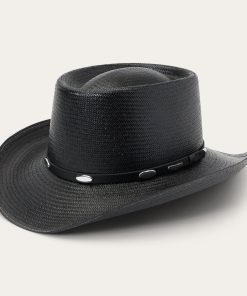 Handmade in the U.S.A., the Royal Flush 10X Straw Cowboy Hat has a 3” brim and a 3 7/8” gambler crown. Its rugged western style is enhanced by a studded leather hat band and a genuine leather sweatband ensures a secure fit and all-day comfort.
