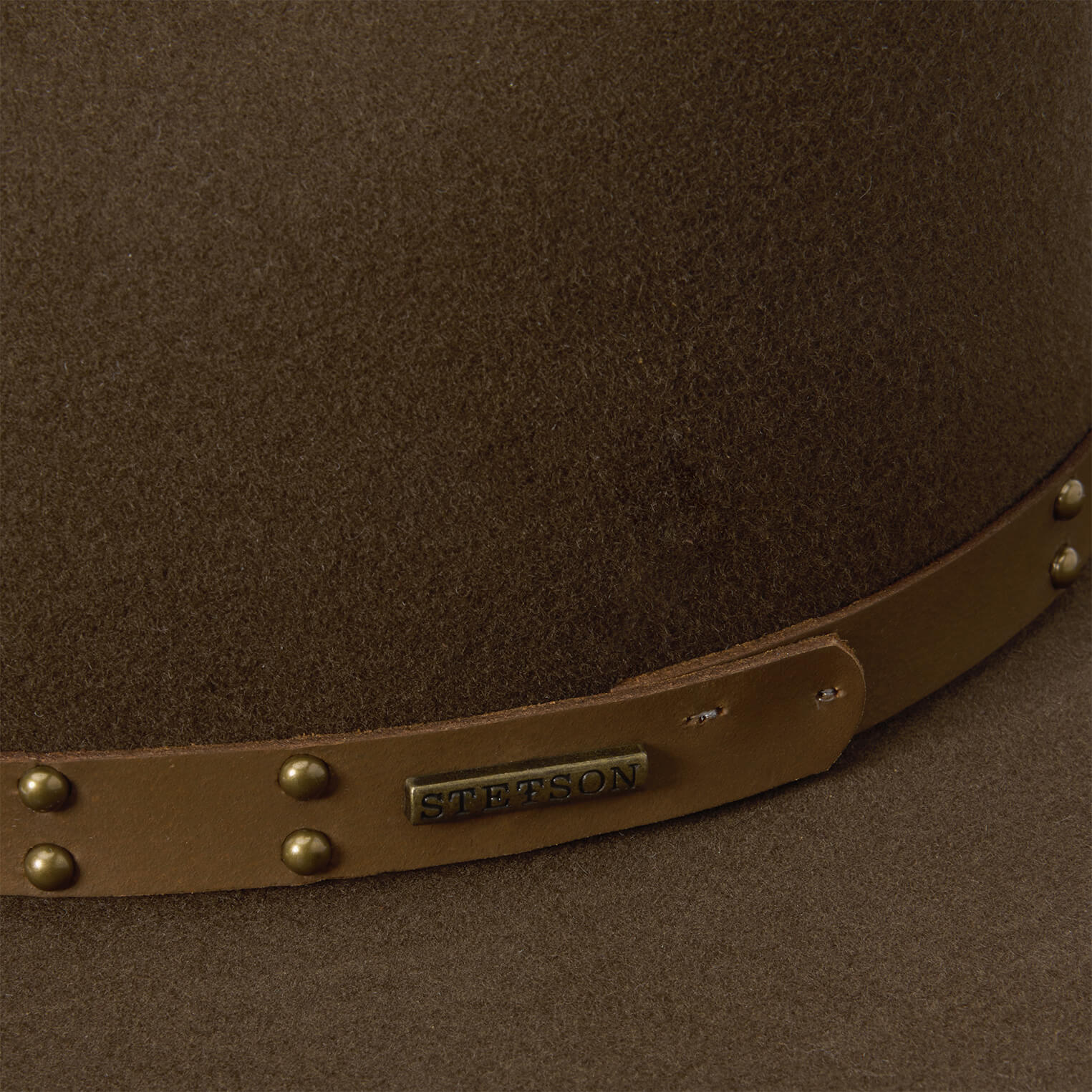 Handmade in the U.S.A. from our proprietary 4X-quality 100% wool felt, the Seminole combines legendary Stetson craftsmanship and classic western style in one timeless package. Its archival silhouette features a statement-making 4” x 5” Gus slope pinch front crown and 4” brim, and it’s finished with a rugged, studded leather hatband. A handsewn genuine leather sweatband and full satin liner provide a time-tested fit and premium comfort.