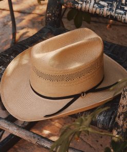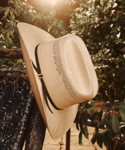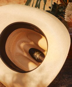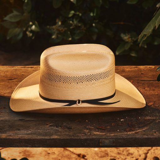 To create The Regal silhouette, Mars and the Stetson design team took a deep dive into the Stetson archive, finding inspiration in a bold silhouette that dates back to the 1870s. The original style features a 4 5/8″ cattleman crown and 3 1/2″ brim. Using this as a starting point, Mars added a 2-ply silk cord hatband and gold-tone horseshoe pin with inlaid rhinestones.