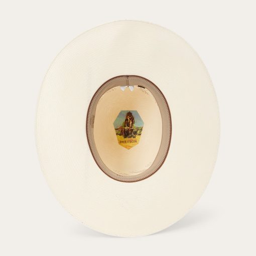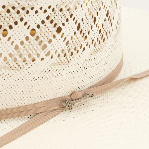 Handmade in the U.S.A. from high-quality shantung, the Thunder 10X Straw Cowboy Hat has a 4 1/4” brim and a 5” vented open crown for superior circulation and breathability. The crown is finished with a 2-ply cord hat band and branding iron hat pin bearing the initials “JBS”, a nod to our founder, John B. Stetson, whose pioneering legacy lives on in every hat we sell. An absorbent DRI-LEX® sweatband ensures premium coolness and comfort all day long.
