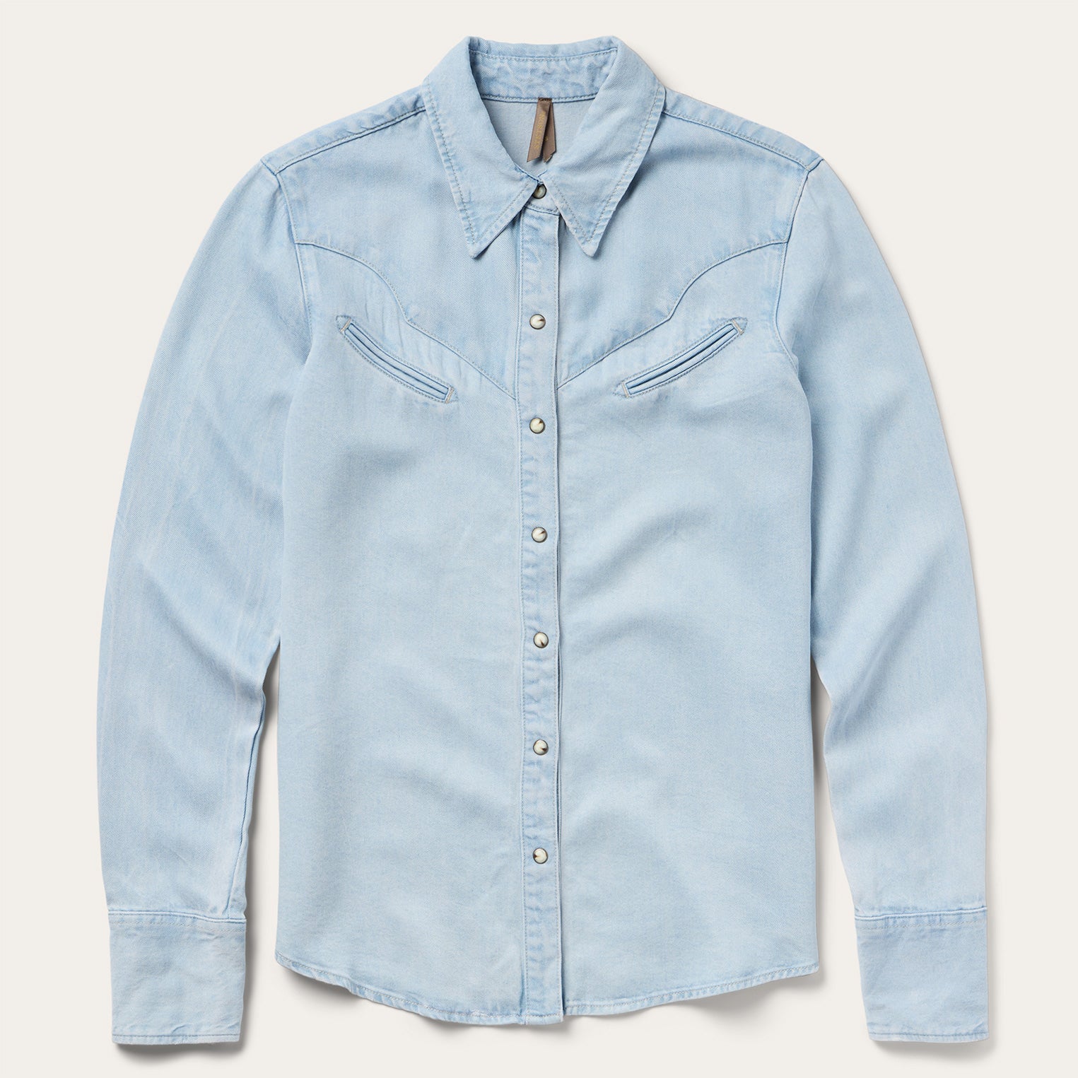 A timeless, versatile denim shirt featuring western-style arrow pockets. Crafted from 100% lyocell and designed to get more comfortable with time, it has single point stylized front yokes, a three point stylized deep curved back yoke, a full snap front and four-snap cuffs.
