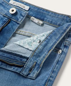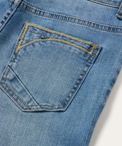 The 751 Wide Leg Fit jeans are crafted from high-quality cotton denim with just a hint of stretch for freedom of movement in a medium blue rinse. They have a high waist and are fitted through the hip with a wide leg opening, creating a statement-making, modern silhouette. Additional features include diagonal pieced back pockets, as well as Stetson branded buttons, rivets, and zipper. Gentle sanding details complete the jeans, giving them a perfect lived-in look that will continue to develop with time.