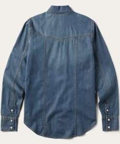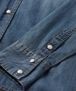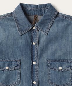Our stylish, comfortable denim shirts are classics for a reason. This all-cotton shirt has a medium blue wash and a flattering, fitted boyfriend cut. Authentic details include a one-point back yoke, one-point chest pockets, one-point pocket flaps with snap closure, chest darts, three-snap cuffs and design seams down the back. And like most things denim, it will only get better with age.