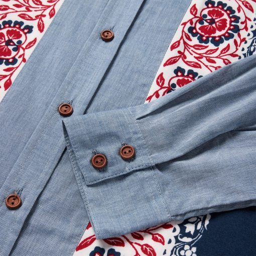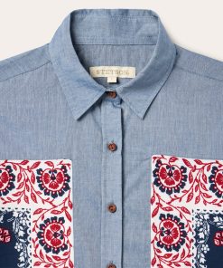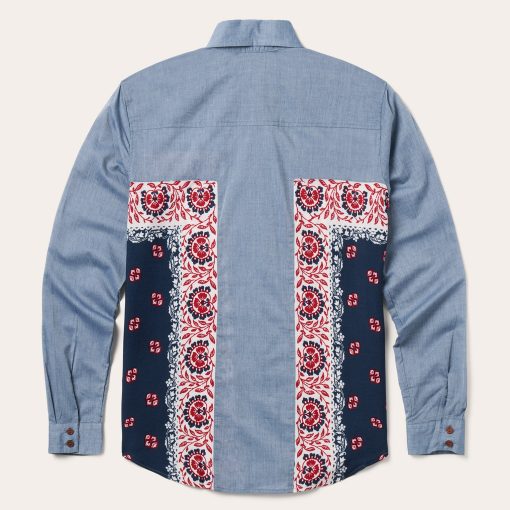 This stylish, western-inspired blouse makes a statement with bandana insets at its sleeves. It has a full button front placket and a straight back yoke. Crafted from soft, high-quality 100% rayon, it has an oversized fit that allows for easy layering and freedom movement.