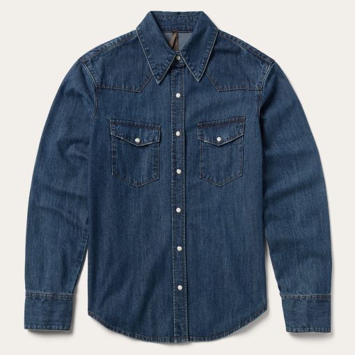 Stetson Women’s Dark Denim Snap Western Shirt | Blue