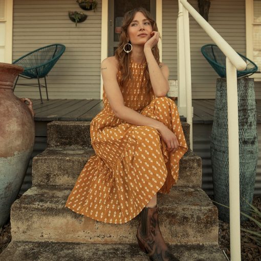 This flowing, ankle-length dress makes a playful addition to any wardrobe. It’s crafted with lightweight cotton woven with our Aztec print, and finished with side-seam pockets and an invisible zipper. A versatile option you can wear to a casual summer wedding, or to brunch with friends.