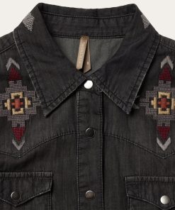 Stetson Women’s Dresses Embroidered Black Denim Shirt Dress | Black