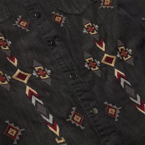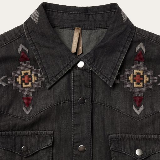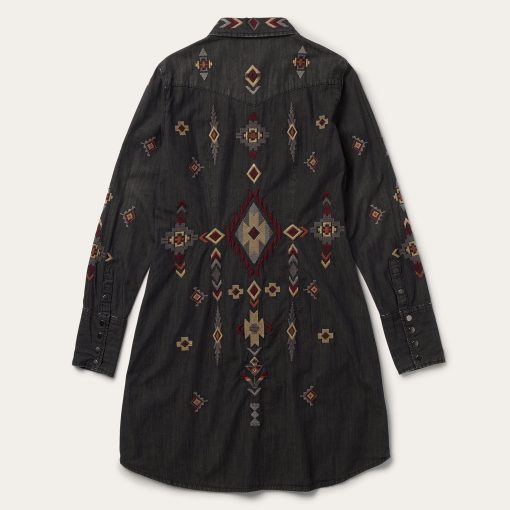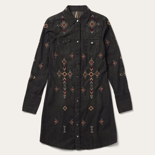 Stetson Women’s Dresses Embroidered Black Denim Shirt Dress | Black