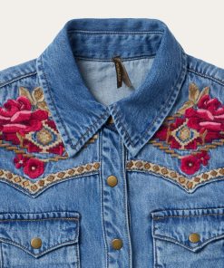 This denim shirt dress makes a statement with its western-inspired style and eye-catching embroidery on its front yoke, back and sleeves. It has single point front and back yokes, single point pockets and flaps, five-snap cuffs and a full snap front. It’s crafted from high-quality 100% lyocell denim that has been garment washed for extra softness and made to get even more comfortable over time. Whether worn on its own or layered over jeans, it has an easy, flattering fit that allows for freedom of movement.