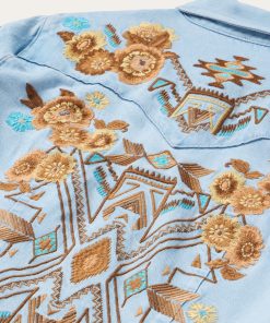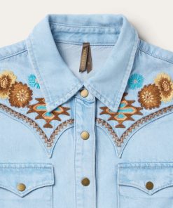 Stetson Women’s Dresses Embroidered Denim Shirt Dress | Light Blue