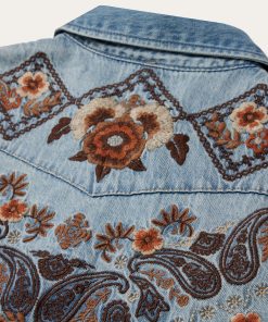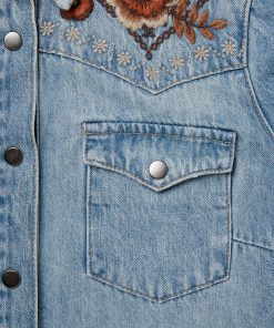 Stetson Women’s Dresses Floral Embroidered Denim Shirt Dress | Blue
