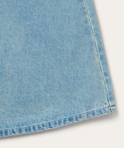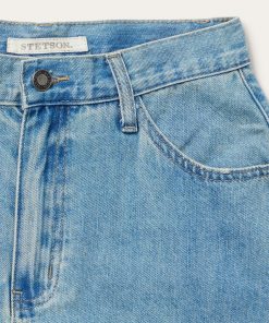 This timeless, versatile western-inspired skirt is crafted from high-quality cotton denim with a light rinse. It has three front jean-style pockets, no back pockets, a waistband with belt loops, zip fly with button closure, seam down center front and back and a finished hem.