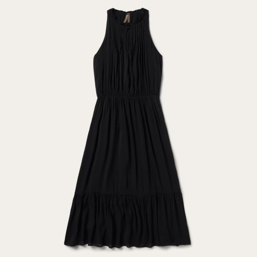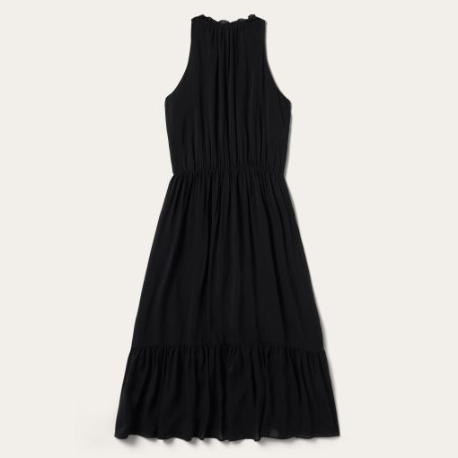 This sleeveless prairie dress is crafted from soft, silky 100% rayon and features a ruffled collar with self-covered button closure and keyhole, elastic at the waist and ruffled hemline. Fully lined, it’s cut with an easy drape, in a flattering fit which allows for comfort and freedom of movement.