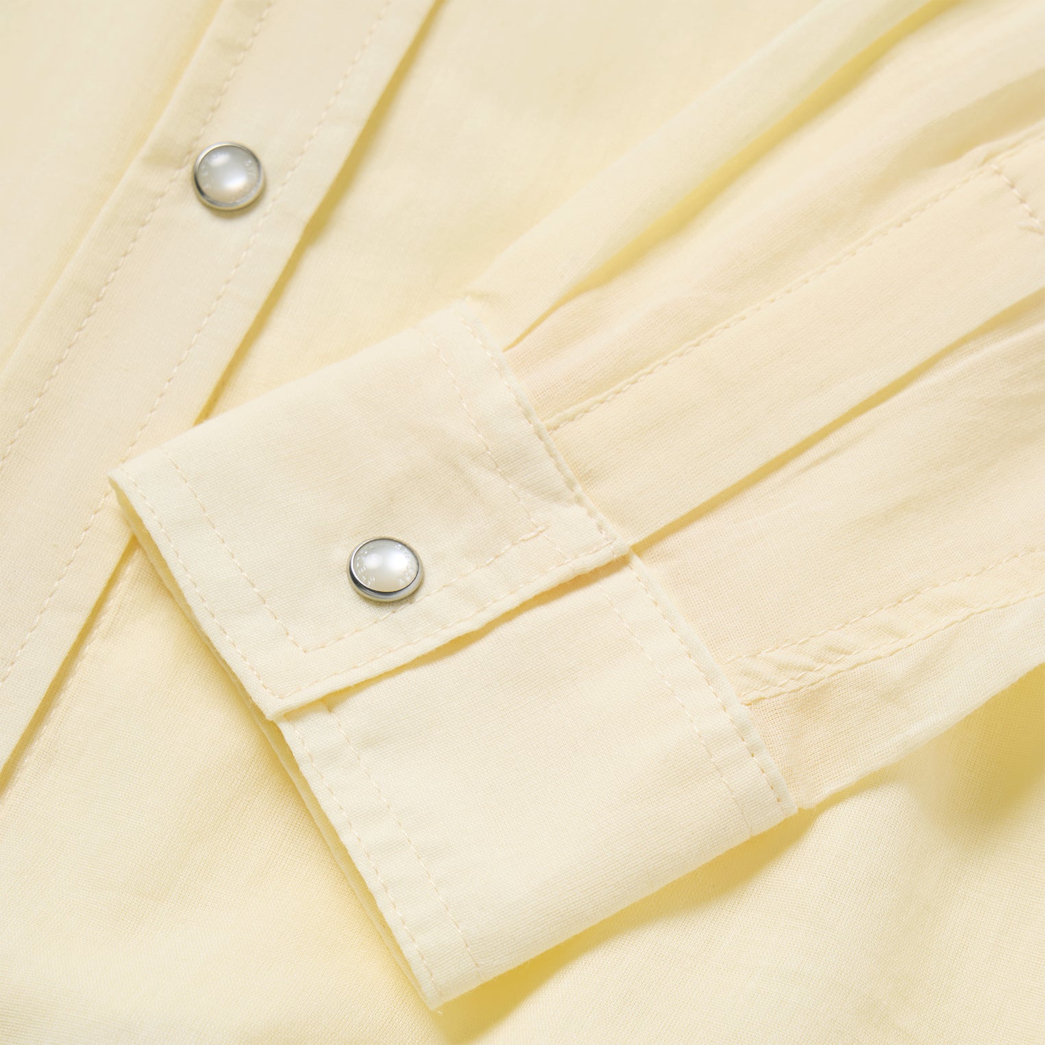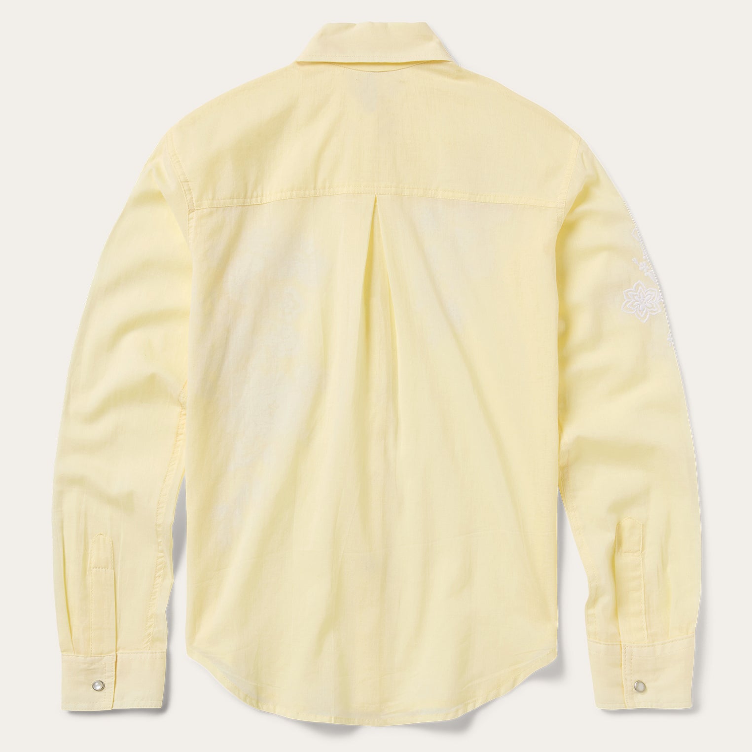 This stylish snap-front shirt features a statement-making embroidered floral detail and is crafted from lightweight cotton lawn that’s been garment washed for a lived-in feel. It has a straight back yoke with inverted box pleat below, no front yoke, and full snap front. Cut with an easy drape, in a flattering fit which allows for comfort and freedom of movement.