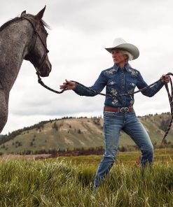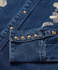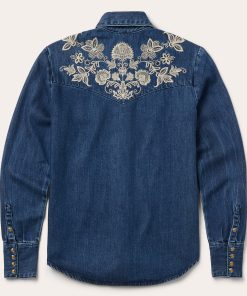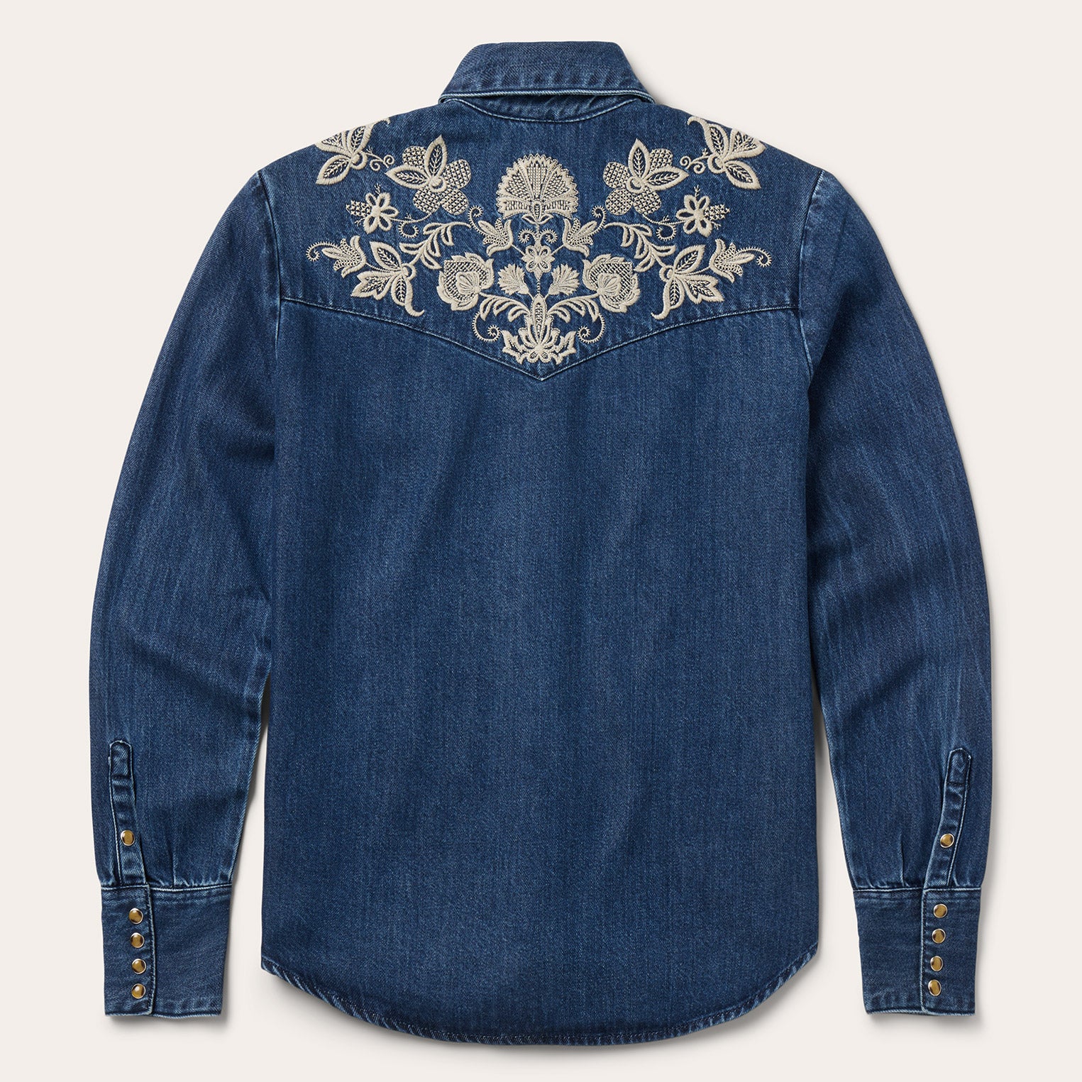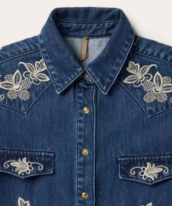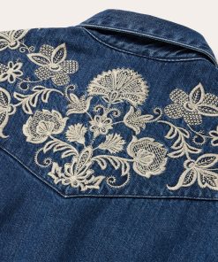 Stetson Women’s Floral Embroidered Dark Denim Shirt | Blue