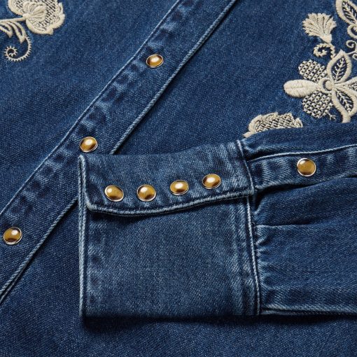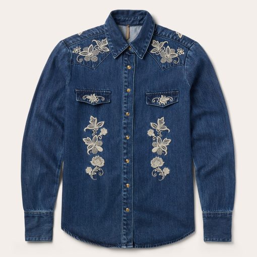 Stetson Women’s Floral Embroidered Dark Denim Shirt | Blue
