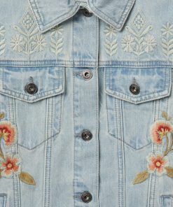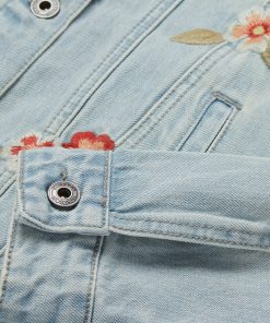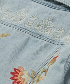 The denim jacket is a true essential, a storied piece of authentic Western outerwear. This version adds flower embroidery for a playful and feminine take on a classic. Finished with authentic details like back waist tabs, flap chest pockets, and metal buttons throughout. Sure to be a favorite throughout the season, and in seasons to come.