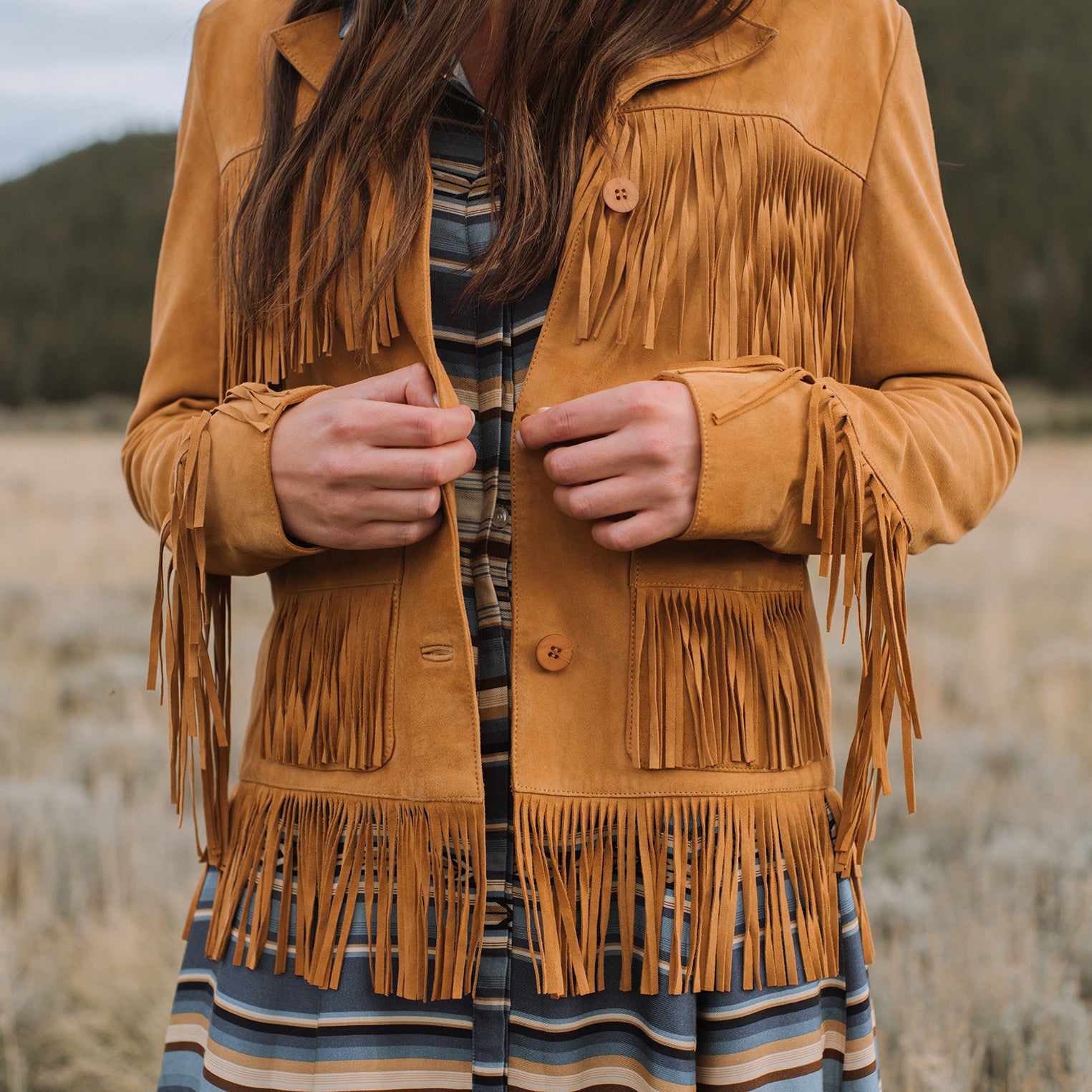 An iconic statement piece, this suede jacket made from high-grade leather features layers of fringe and Western details like stylized front patch pockets and a notched collar. Supple leather and quality craftsmanship will make this Western classic a closet go-to for years to come.