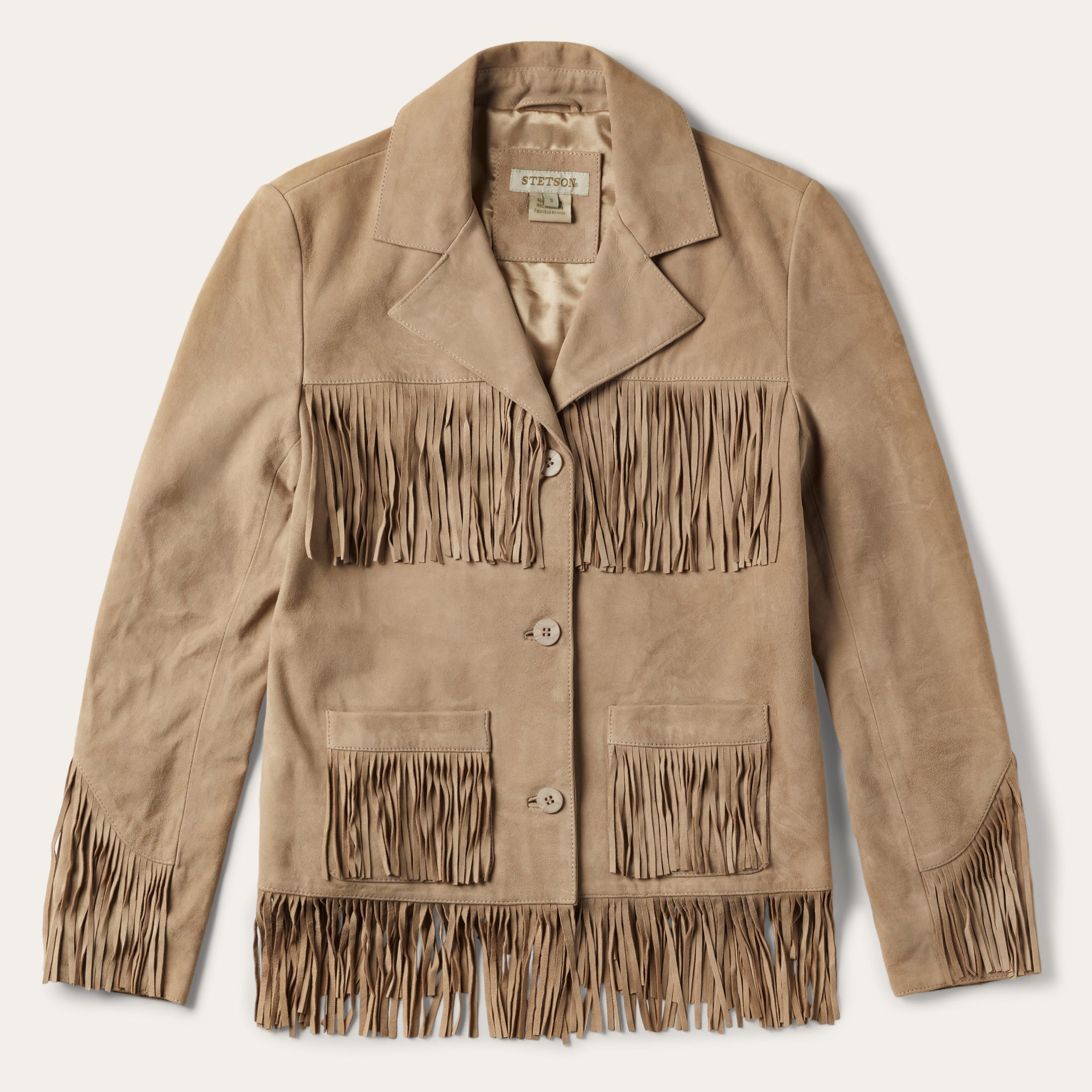 An iconic statement piece, this suede jacket made from high-grade leather features layers of fringe and Western details like stylized front patch pockets and a notched collar. Supple leather and quality craftsmanship will make this Western classic a closet go-to for years to come.