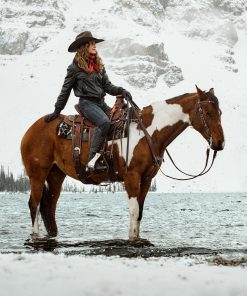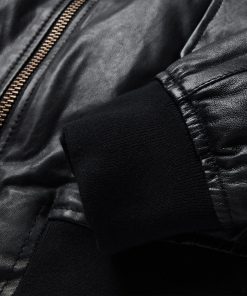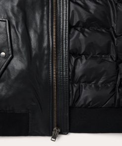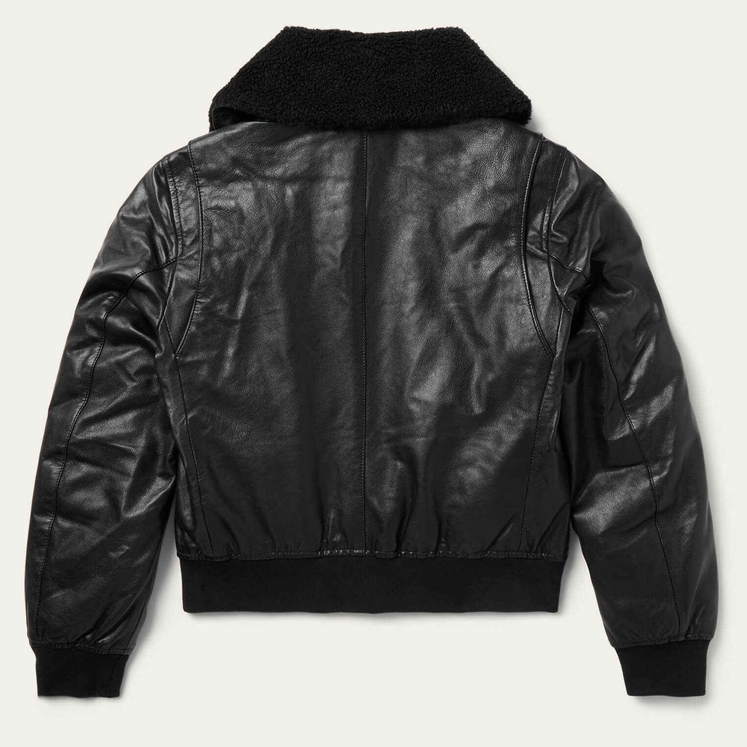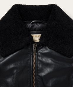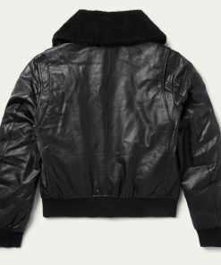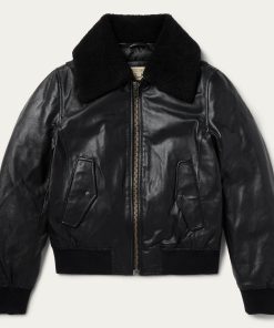 This classic bomber jacket is crafted from high-quality leather and features a statement-making oversized sherpa collar. It has a full front zip, princess seams, angled front hand pockets with single-point flaps and snap closure, rib knit cuffs and waistband and a flattering, fitted silhouette.