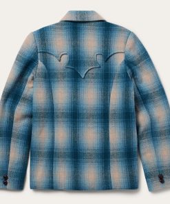 This stylish three-button ombre plaid blazer is crafted from high-quality 100% wool and has a western-inspired style. Authentic details include fancy curved front and back yokes, two inset pockets with flaps and button closure and two-button cuffs. A darted waistline and princess seaming provides a flattering, fitted silhouette, while still allowing for all-day comfort and freedom of movement.
