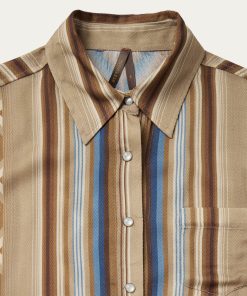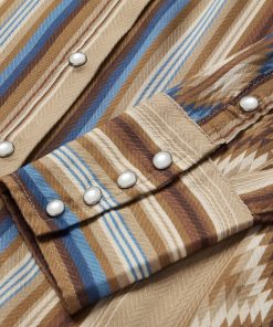 This stylish long-sleeve western shirt is crafted from 100% herringbone rayon, which has a smooth, silky feel and features our exclusive Sand Serape print. It has a single-point deep curved yoke, a single point patch pocket, a classic snap front and deep, four-snap cuffs. Cut with an easy, flattering drape, the blouse allows for all-day comfort and freedom of movement.
