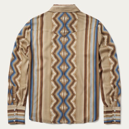 This stylish long-sleeve western shirt is crafted from 100% herringbone rayon, which has a smooth, silky feel and features our exclusive Sand Serape print. It has a single-point deep curved yoke, a single point patch pocket, a classic snap front and deep, four-snap cuffs. Cut with an easy, flattering drape, the blouse allows for all-day comfort and freedom of movement.