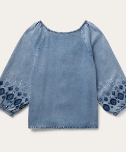 Stetson Women’s Shirts Denim Snap Front Blouse | Blue