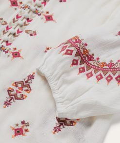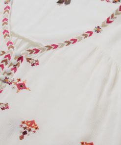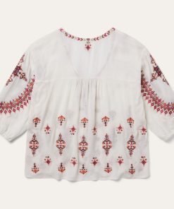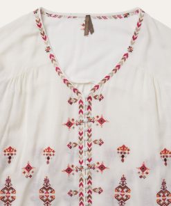 This top offers a soft and flowing silhouette with bohemian embroidered detailing throughout, including subtly hidden buttons at the front. A relaxed choice for brunch, a music festival, or wherever else the season takes you.