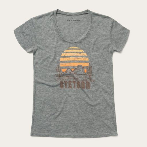 Nothing says good times like the relaxed feel of a graphic tee. Designed for maximum comfort without sacrificing an ounce of style, our t-shirts are made from airy cotton and screen-printed with custom signature graphics. This Western Stetson tee has been gently distressed, providing the perfect worn-in look for the spirited cowgirl. Go casual with a pair of jeans and boots, or dress things up with a skirt and sandals — however you decide to wear it, this shirt will see you through your day and then some. Extra soft and cut with the perfect slim fit, it’s an instant classic.