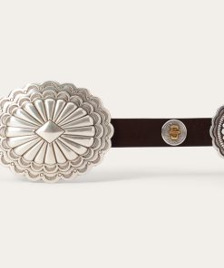 Made from top grain leather, this Southwestern concho belt has a 3/4” wide dark brown leather strap with silver-tone slider conchos and two-tone logo conchos. It features five holes on the point end to ensure a proper fit for all body types and is finished with an oval plaque silver-tone buckle. Our belts embody our legendary commitment to quality and make the perfect complement to your favorite hat and boots.